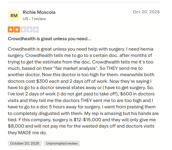 In my video, I shared a member experience where someone said they were routed to multiple doctors because the estimates were considered too high under “fair market” pricing. The member described delays, extra visits, missed work, and being pressured to travel farther for surgery.